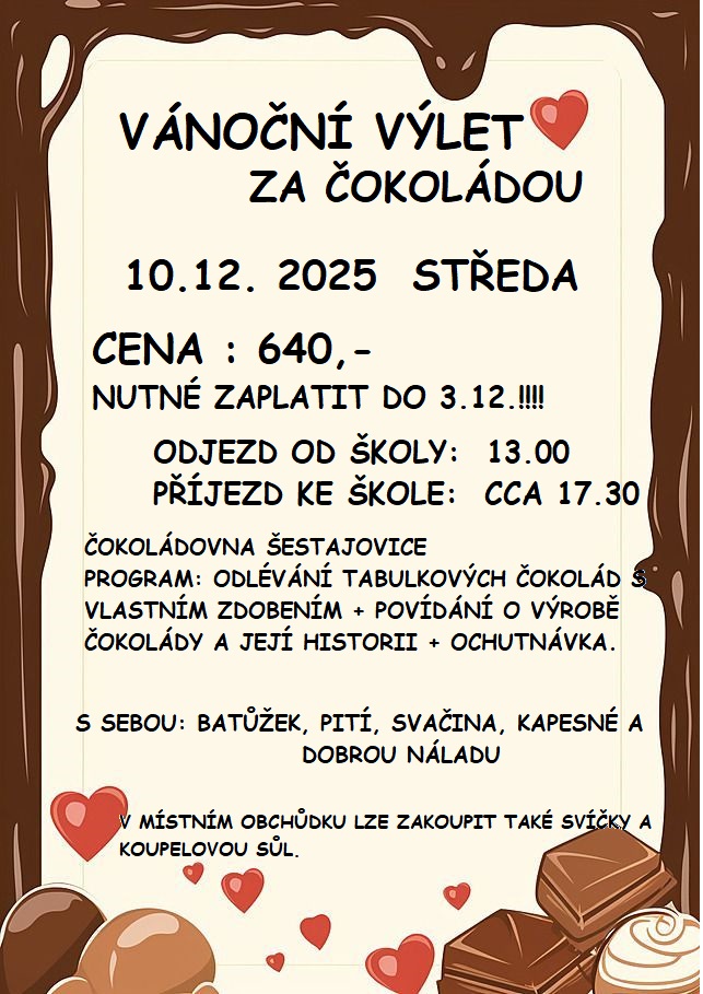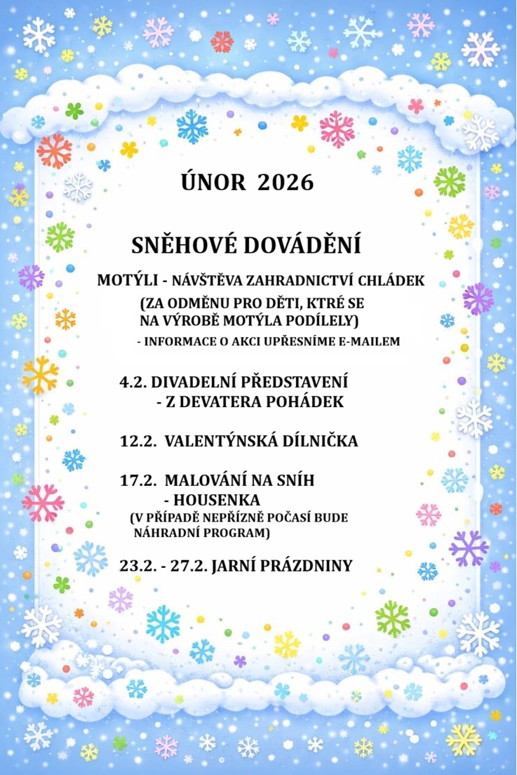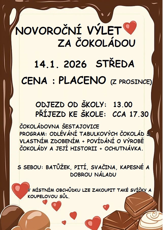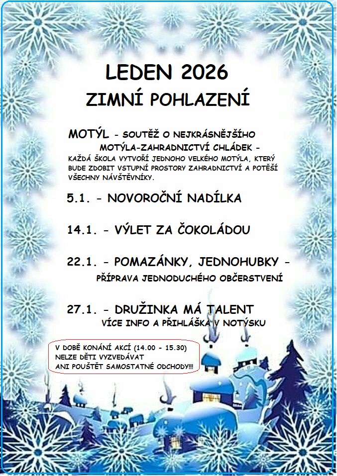 POPLATEK ZA ŠKOLNÍ DRUŽINU: pro šk. rok 2025/2026 byl rozhodnutím Rady městské části Prahy 6 stanoven polatek 500 Kč za měsíc.